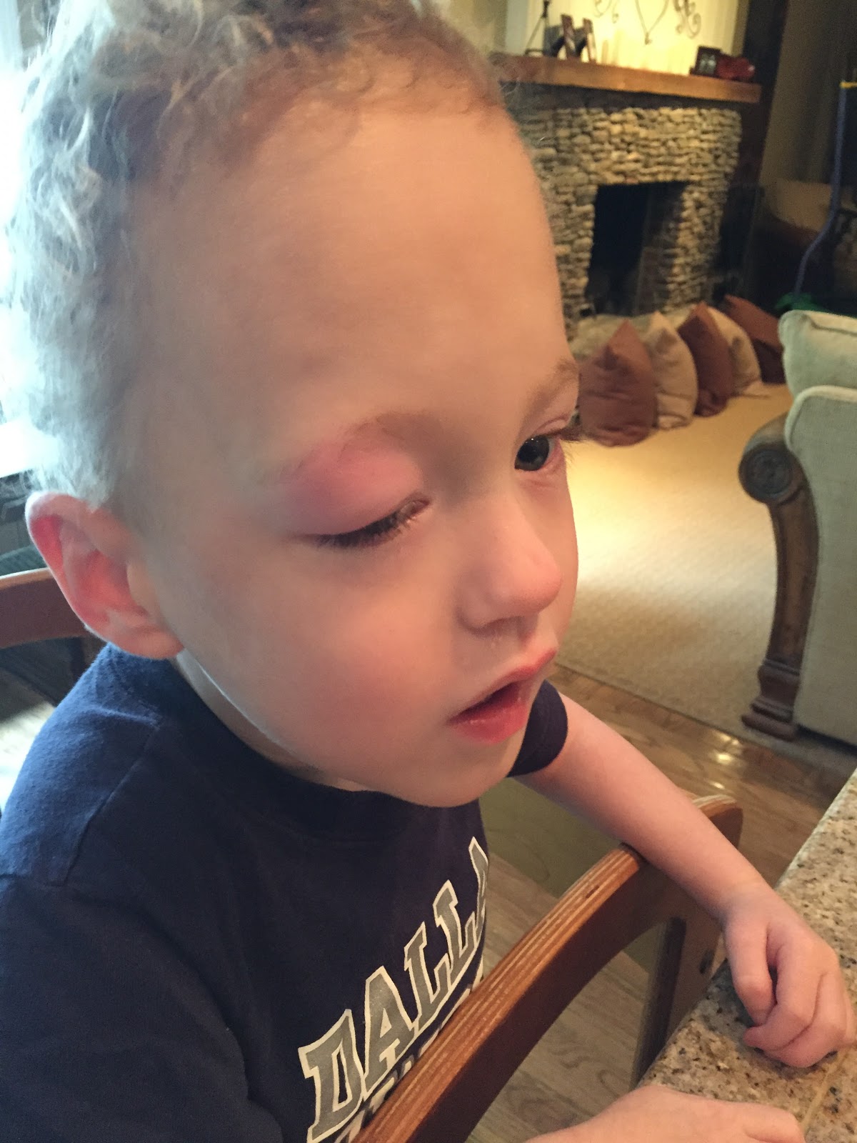 Logan had a great week and a wonderful but tired day at school today. Poor little guy got a big mosquito bite on his eye and he had an allergic reaction! He swelled up, so Mommy and Daddy felt it best to head to the Dr today to just make sure it wasn't something more serious, The Dr said it was nothing more than a reaction to the bug bite. So that eased our minds.